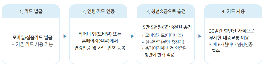 기후동행카드는 청년요금(5만 5천원, 5만 8천원)으로 충전 가능합니다.